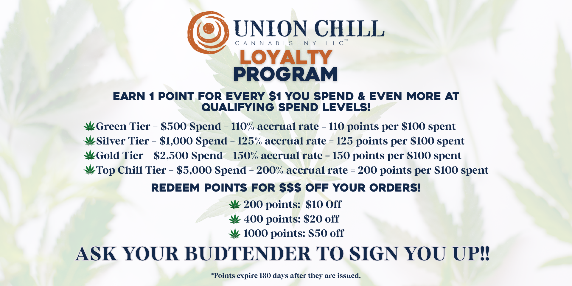 Union Chill Rewards Points will expire 180 days after earning.